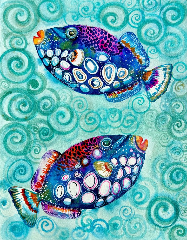 Sea creatures, Floridian-scapes, humidity, tourists, colors, books, conversations and inspirational words--they all lend a hand in painting my tropical love creations.